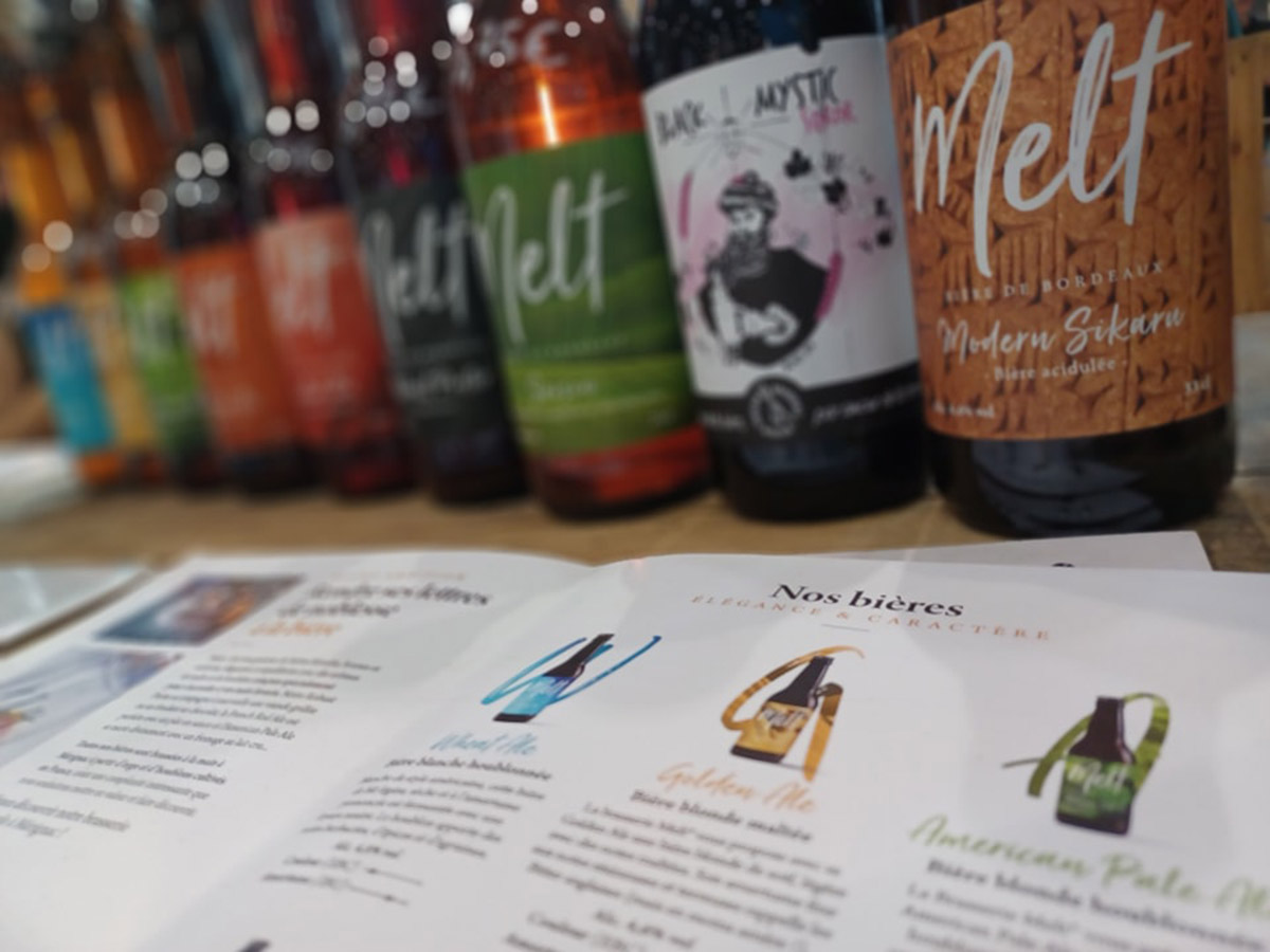 Toutes les bières qui sortent de la Brasserie Melt sont brassées à la main à Mérignac. La gamme est produite à partir d’orge et de houblons cultivés en France qui offrent une complexité intéressante qu’ils souhaitent mettre en valeur et faire découvrir. Mélanie et Pierre prennent plaisir à concevoir des recettes avec créativité. Exigeants sur la qualité des produits, ils sont heureux lorsqu’ils perçoivent des étoiles dans les yeux de leurs clients.