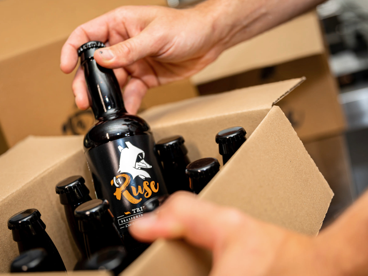 J’ai quatre bières dans ma gamme : la Ruse triple (taux d’alcool de 7,6%), qui est celle que je vends le plus, la Ruse blanche (taux d’alcool 5%), la Ruse blanche (taux d’alcool 5%) et la Ruse brune (taux d’alcool 6,2%). Mes bières sont certifiées bio par Écocert. Aujourd’hui, je produits 120 hectolitres par an. Je suis encore un petit. Je compte sortir une blonde plus légère et plus houblonnée dans quelques semaines. J’ai aussi en tête de brasser une Kriek aux fruits rouges… c’est encore un rêve aujourd’hui.