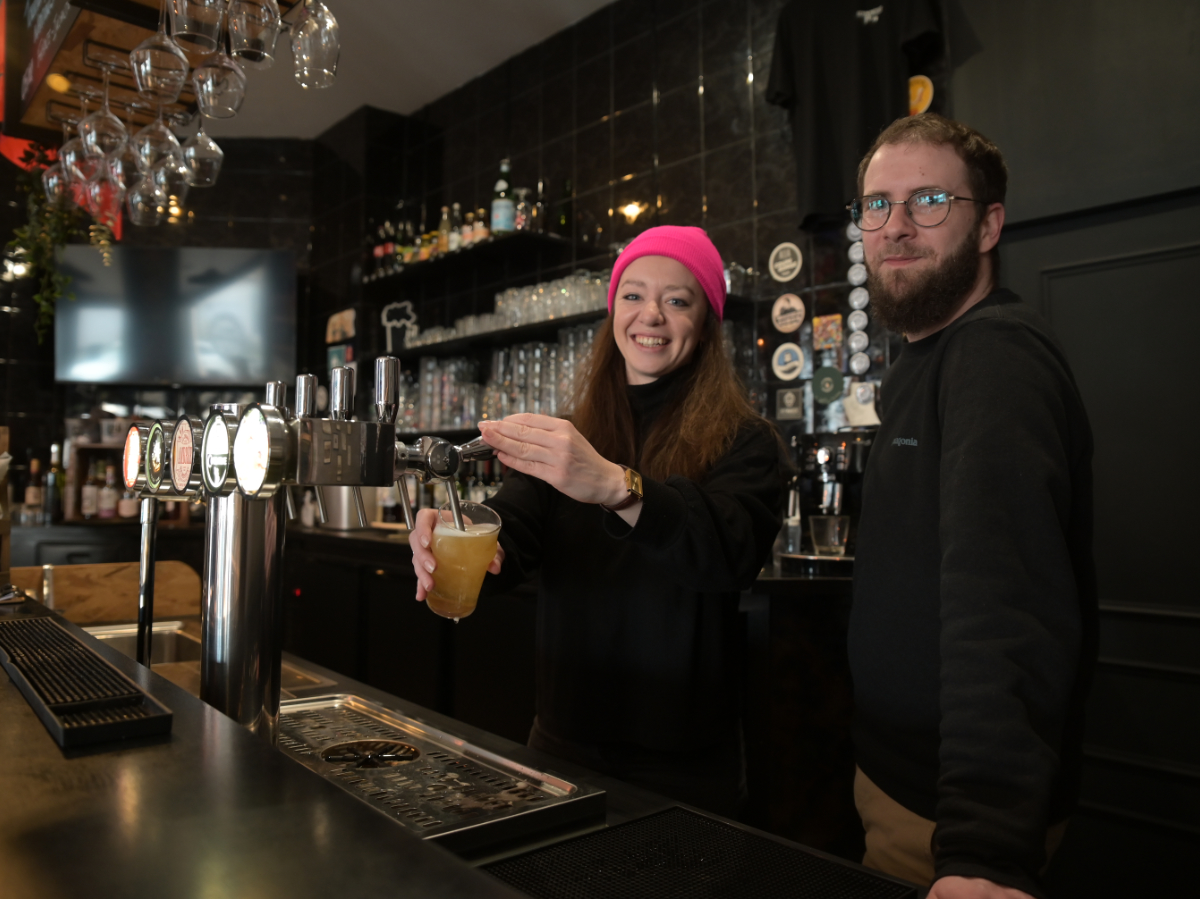 Installés à Caen depuis 2024, les Bretons Morgan Gicquel et Amélie Fourré ont fait du Bon Prétexte un bar-cave à bières atypique. C’est une vitrine vivante des brasseries normandes, où les pressions tournent, les styles se croisent et la curiosité des client·es est constamment titillée. Entre convivialité de bistrot de quartier et défense du bien brassé local, leur projet ne cesse de mousser. L’occasion parfaite d’aller rencontrer ces défenseurs, au quotidien, du bien brassé normand.